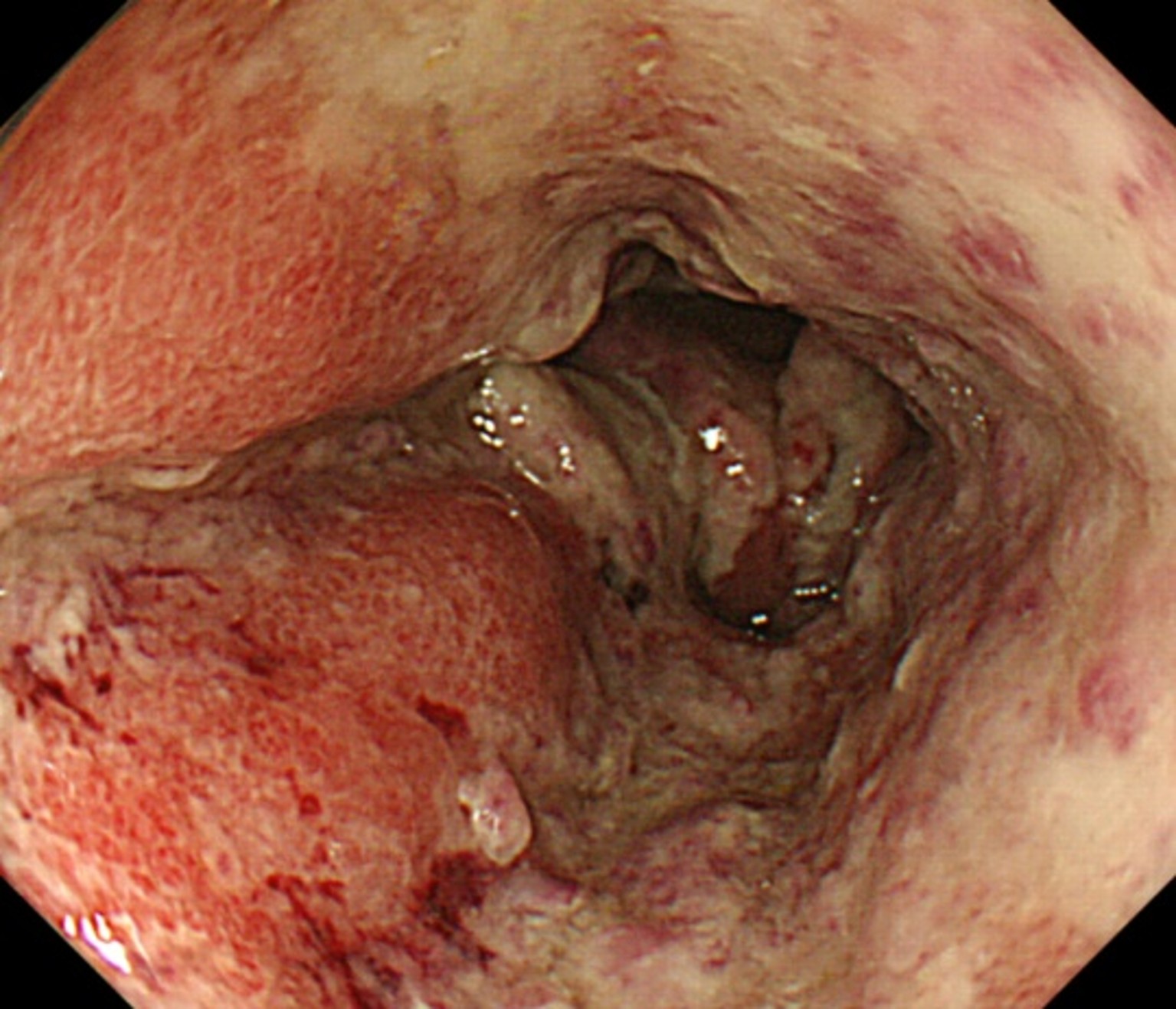 Aさんの場合、内視鏡検査で粘膜全体が赤くただれ、潰瘍もあり出血しやすくなっていました。典型的な潰瘍性大腸炎の所見です。
